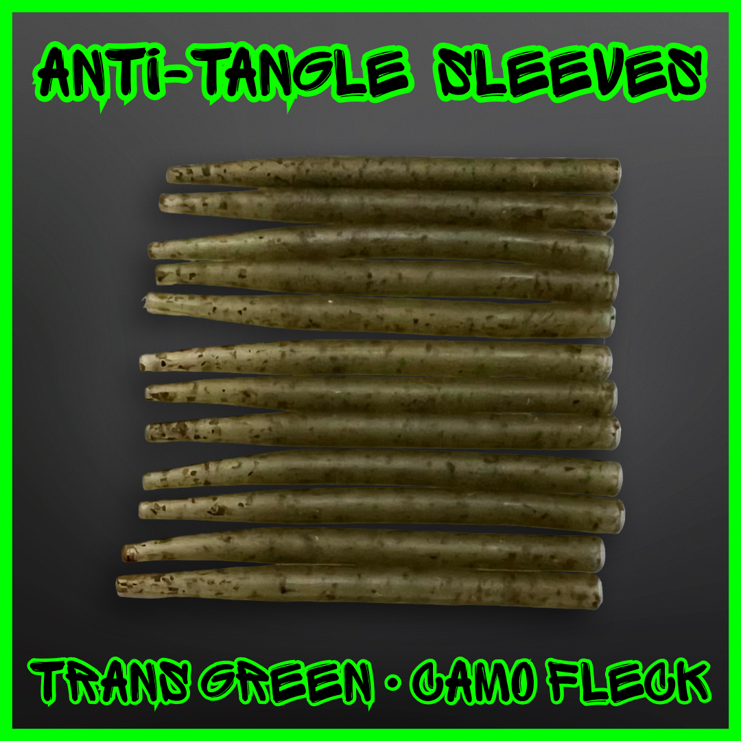 Our Anti Tangle Sleeves are semi stiff which makes them perfect to ensure your bait and hook-link kick away from the lead giving the optimum presentation. Weed green in colour they blend in to the lake bed. Can be trimmed for other uses such as pva bag rigs. Floater fishing.